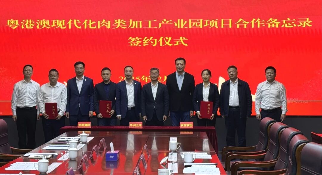 2025年12月18日下午,星空app官方站官网集团旗下广东省珠海粮油食品进出口有限公司(以下简称“食出公司”)与华润五丰(中国)投资有限公司(以下简称“华润五丰”)、珠海金航产业投资集团有限公司(以下简称“金航集团”)在珠海市金湾区市民服务中心共同签署《粤港澳现代化肉类加工产业园项目合作备忘录》,标志着三方将强强联合,携手打造一个深耕珠海、服务港澳、辐射珠西、面向全国的高标准现代化肉类供应新平台。金湾区委书记梁耀斌,华润五丰副总经理许宗煜,星空app官方站官网集团党委书记、董事长李鸿斌等出席签约仪式,金湾区政协副主席黎文星主持签约仪式。