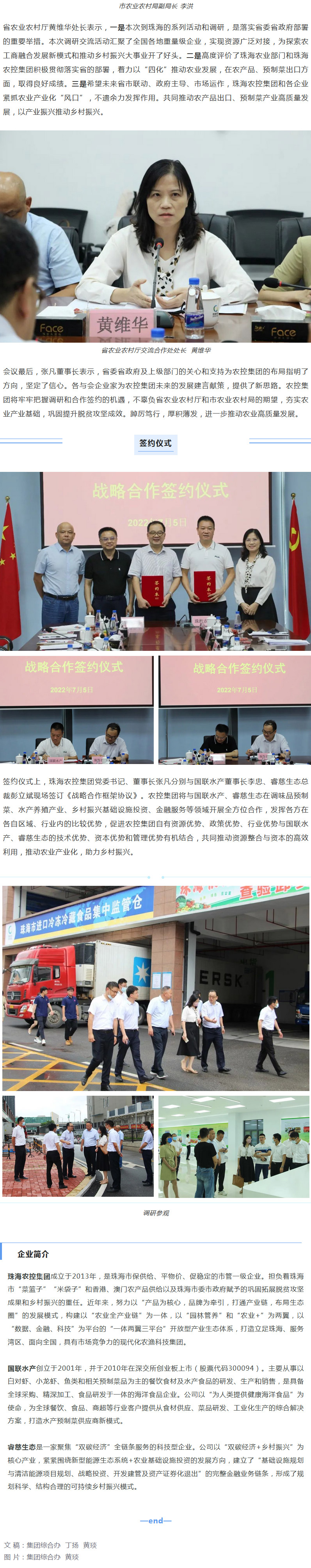 省农业农村厅领导率企业代表调研星空app官方站官网集团并见证签约