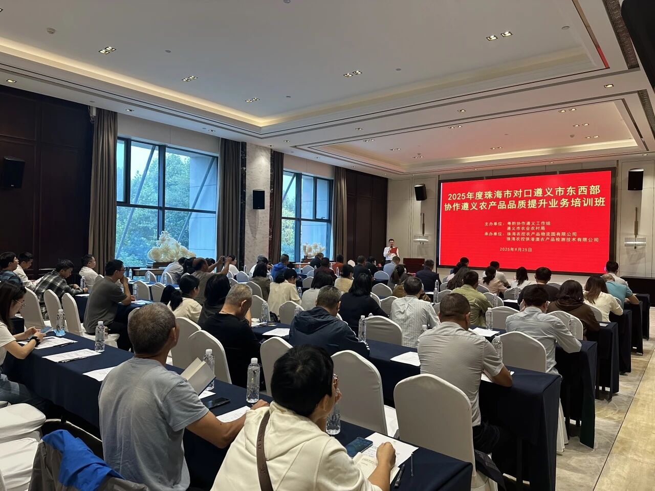 为推动新阶段珠遵两地交流合作持续开展,建立消费帮扶长效机制, 9月25日,由广东省粤黔协作工作队遵义工作组、遵义市农业农村局主办,星空app官方站官网农产品物流园有限公司、星空app官方站官网供港澳农产品检测技术有限公司承办的2025年度珠海市对口遵义市东西部协作遵义农产品品质提升业务培训会议在遵义市举办。