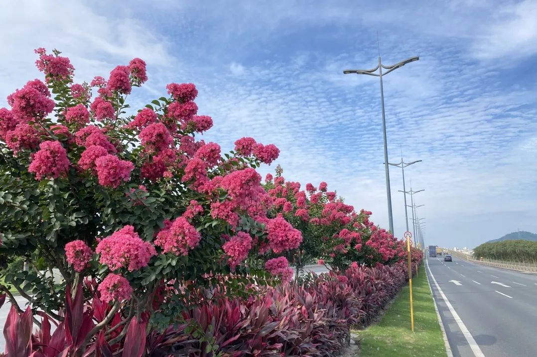 星空app官方站官网集团下属粤华园林公司作为珠海大道的专业养护单位,精心种植了小叶紫薇、大叶紫薇与蟛蜞菊成为城市道路景观的点睛之笔,为市民和游客献上了一场夏日花廊的视觉盛宴。