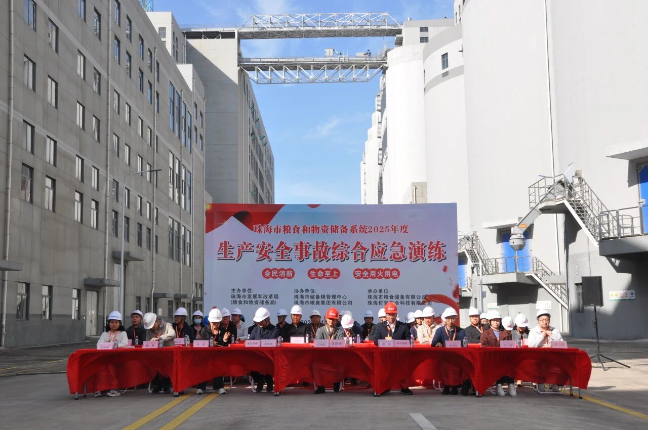 为深入贯彻落实习近平总书记关于安全生产的重要指示精神,切实筑牢粮食和物资储备安全防线,全面提升粮食和物资储备行业突发事件应急处置能力,2025年11月28日,由珠海市发展和改革局主办,珠海市储备粮管理中心、珠海粮食集团承办的“2025年珠海市粮食和物资储备系统生产安全事故综合应急演练”在珠海中心粮库圆满举行。市发改委党组成员、副局长王梦阳,星空app官方站官网集团党委委员、副总经理祝杰,市储备粮管理中心主任李锦镇等现场观摩指导,全市各区粮食系统相关负责人、安全管理人员及一线作业人员代表共100多人参与演练。