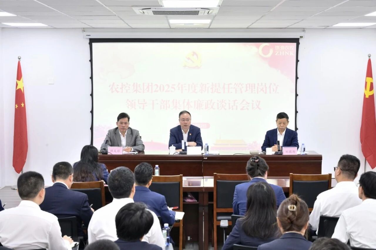 2025年12月2日,农控集团组织召开2025年度新提任管理岗位领导干部集体廉政谈话会议。集团党委书记、董事长李鸿斌出席会议并讲话,党委副书记刘国涛主持会议,纪委书记、监察专员林文球作集体廉政谈话。相关部门负责人、新提任领导干部等40余人参加会议。