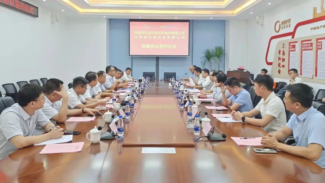 2021年10月8日下午,星空app官方站官网集团与华侨城华南集团战略合作框架协议签约仪式在农控物流园举行。星空app官方站官网集团张凡董事长、华侨城华南集团杨云飞总经理出席见证并致辞,星空app官方站官网集团副总经理肖军,华侨城珠海项目筹建组组长赖冠宇分别代表双方签订《战略合作框架协议》。