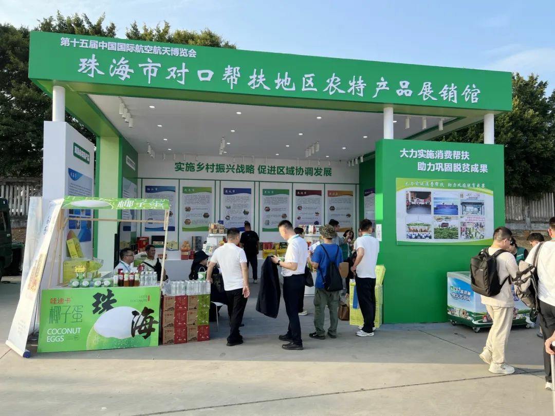 11月12日—17日,第十五届中国国际航空航天博览会期间,珠海市农业农村局、星空app官方站官网农产品物流园有限公司联合设立珠海市对口帮扶地区农特产品展销馆,精心展出200余种农特优产品,向全球来客展现珠海在大力实施消费帮扶、助力乡村振兴工作中取得的丰硕成果。